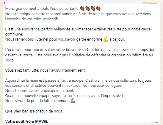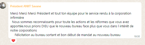 Merci pour l’organisation Infirmière, mais vos voix ne sont pas entendu, demandé un dossier infirmiers pour éviter les embêtements réalisé par les médecins du pays aux infirmiers.