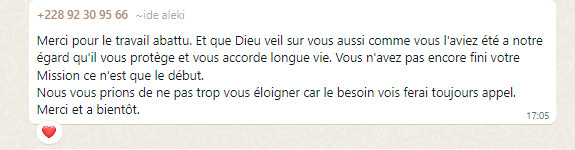 Merci pour les efforts que vous faites en faveur de la corporation