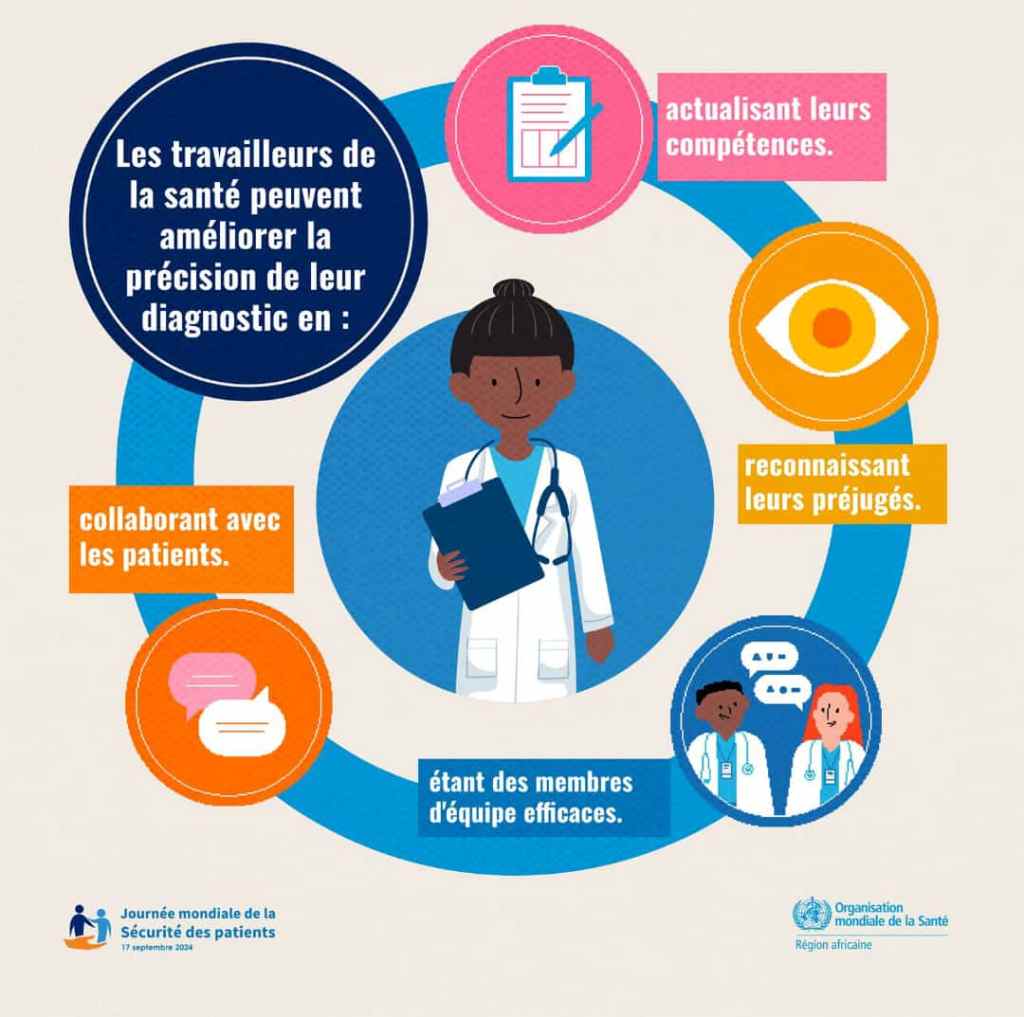 Les erreurs de diagnostic représentent plus de 16 % des préjudices évitables pour les patients et sont courantes dans tous les domaines de soins de santé. Un diagnostic correct et opportun nécessite une collaboration entre les patients, les familles, les travailleurs de la santé et les décideurs politiques. Ensemble, travaillons pour améliorer la sécurité des patients.